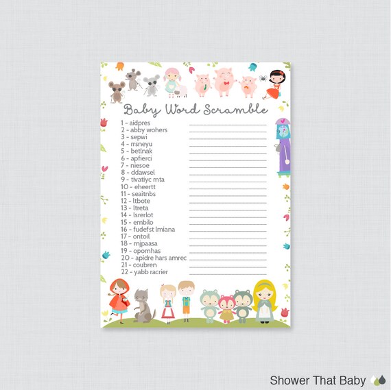 Nursery Rhyme Themed Baby Shower Word Scramble Game Etsy